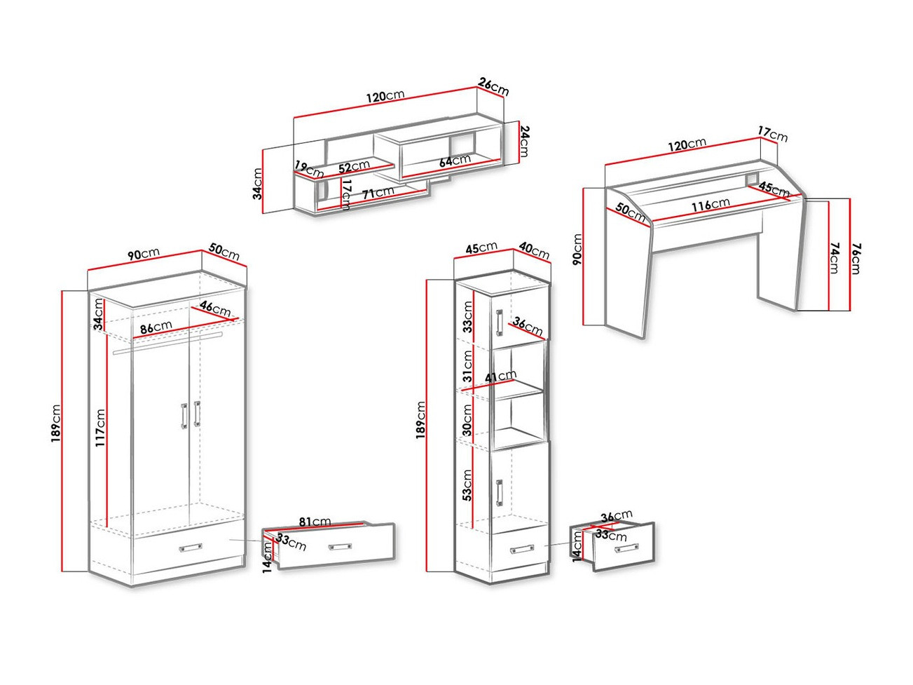 189 x 45 x 40 cm