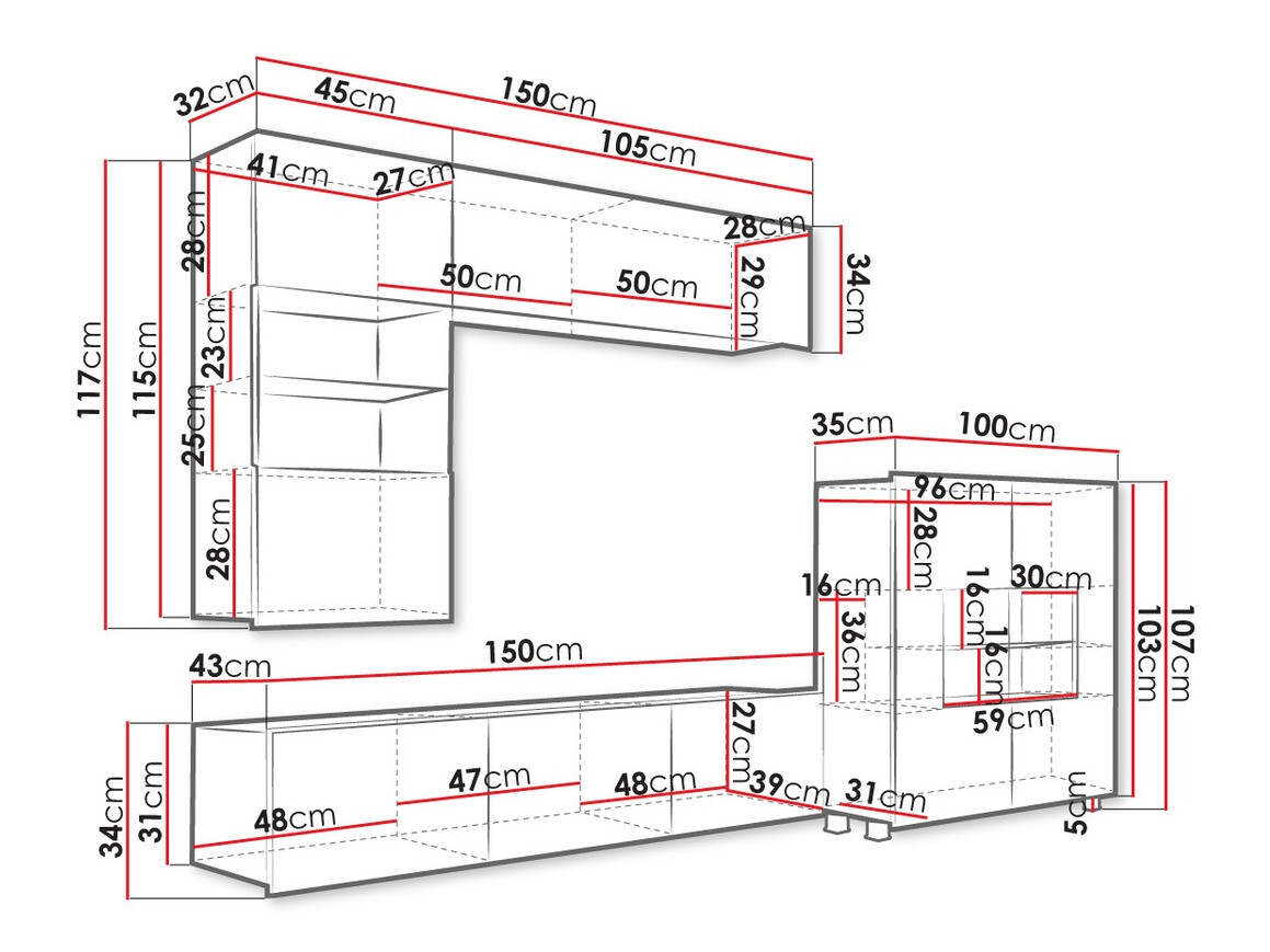 34 x 105 x 32; 117 x 45 x 35 cm