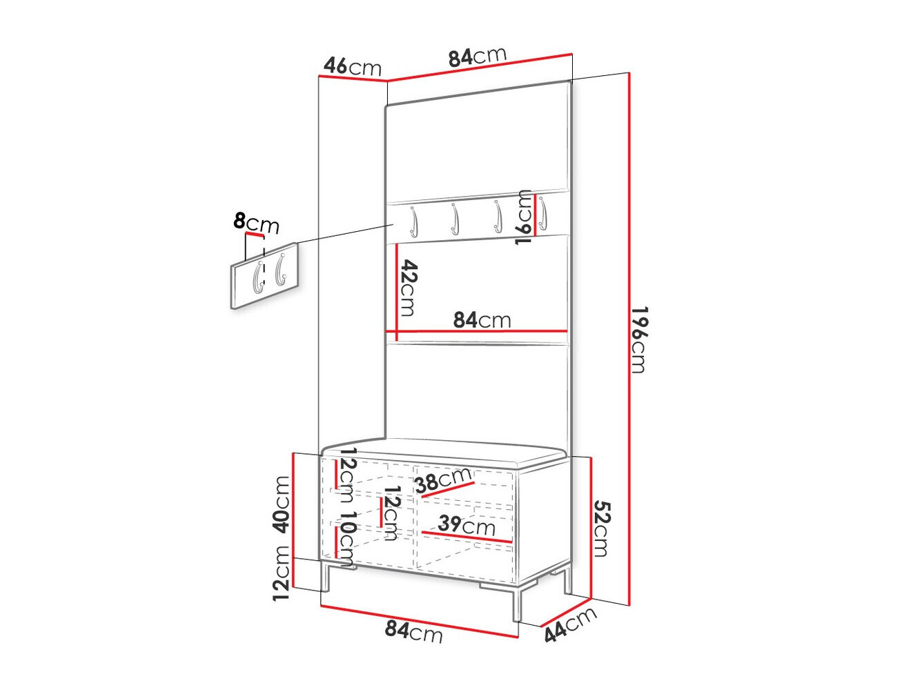 16 x 84 x 8 cm