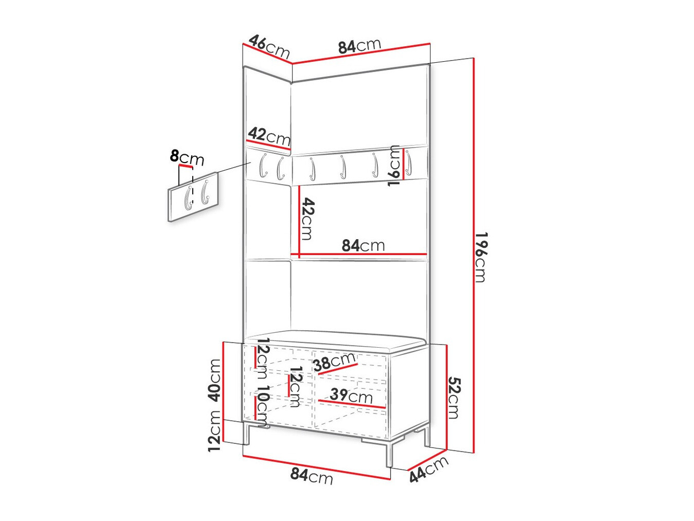 16 x 84 x 8; 16 x 42 x 8 cm