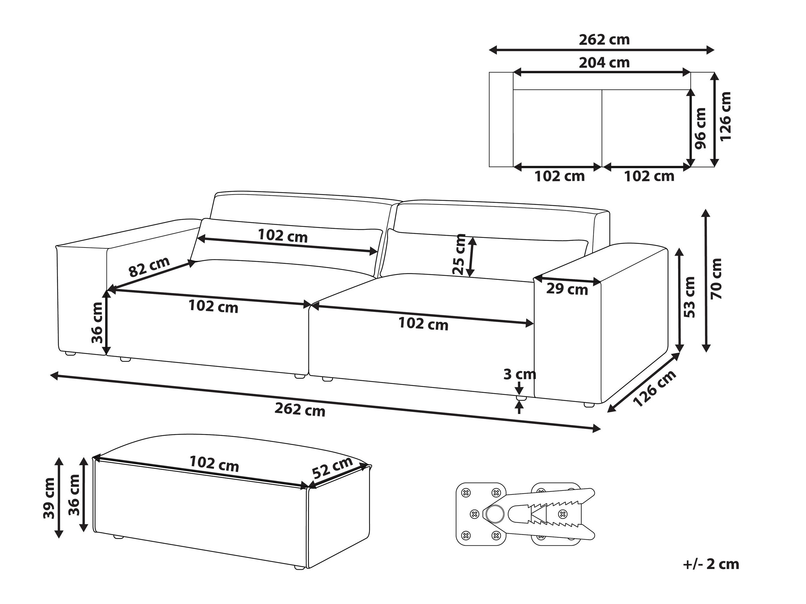 70 x 262 x 126 cm