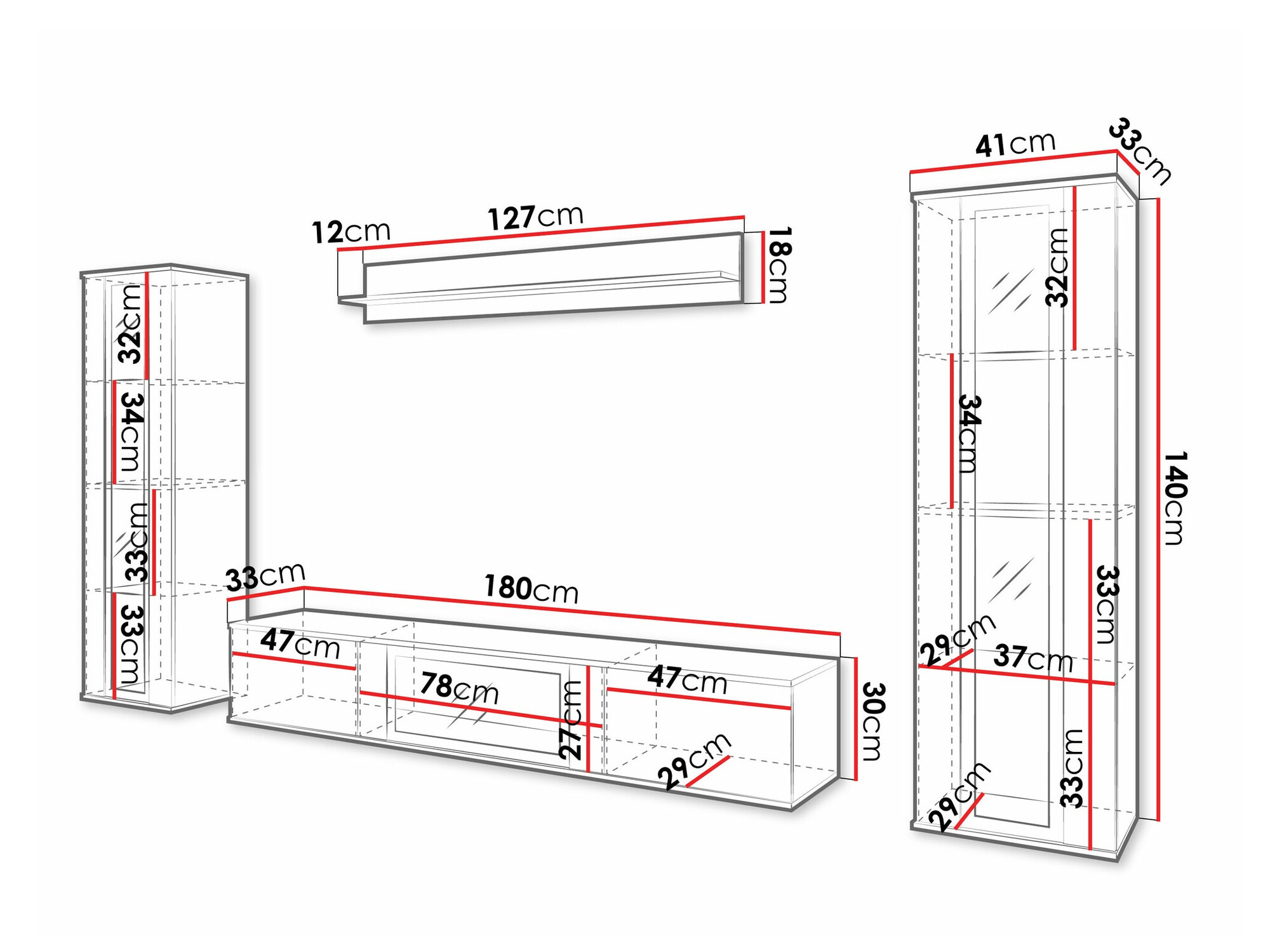 30 x 180 x 33 cm