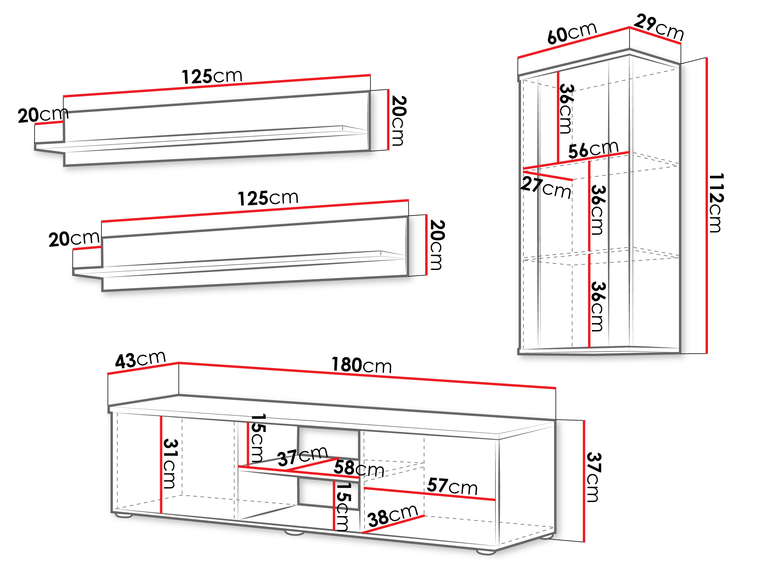 37 x 180 x 43 cm