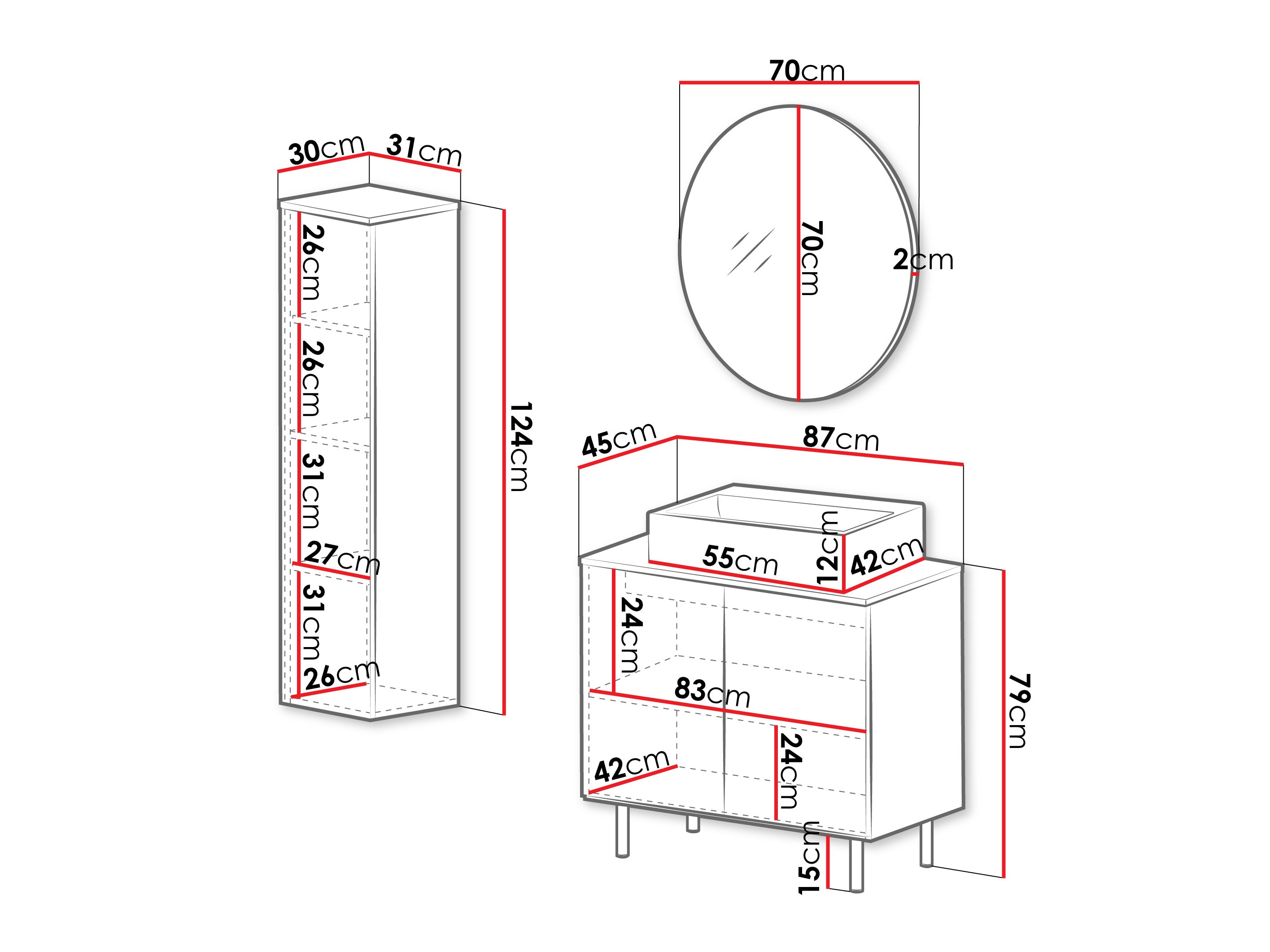124 x 31 x 30 cm