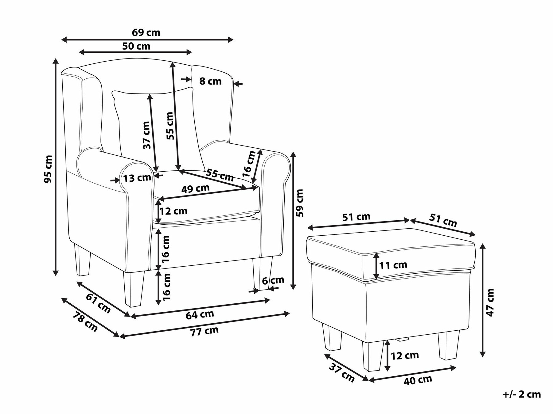 Pufa izmēri: