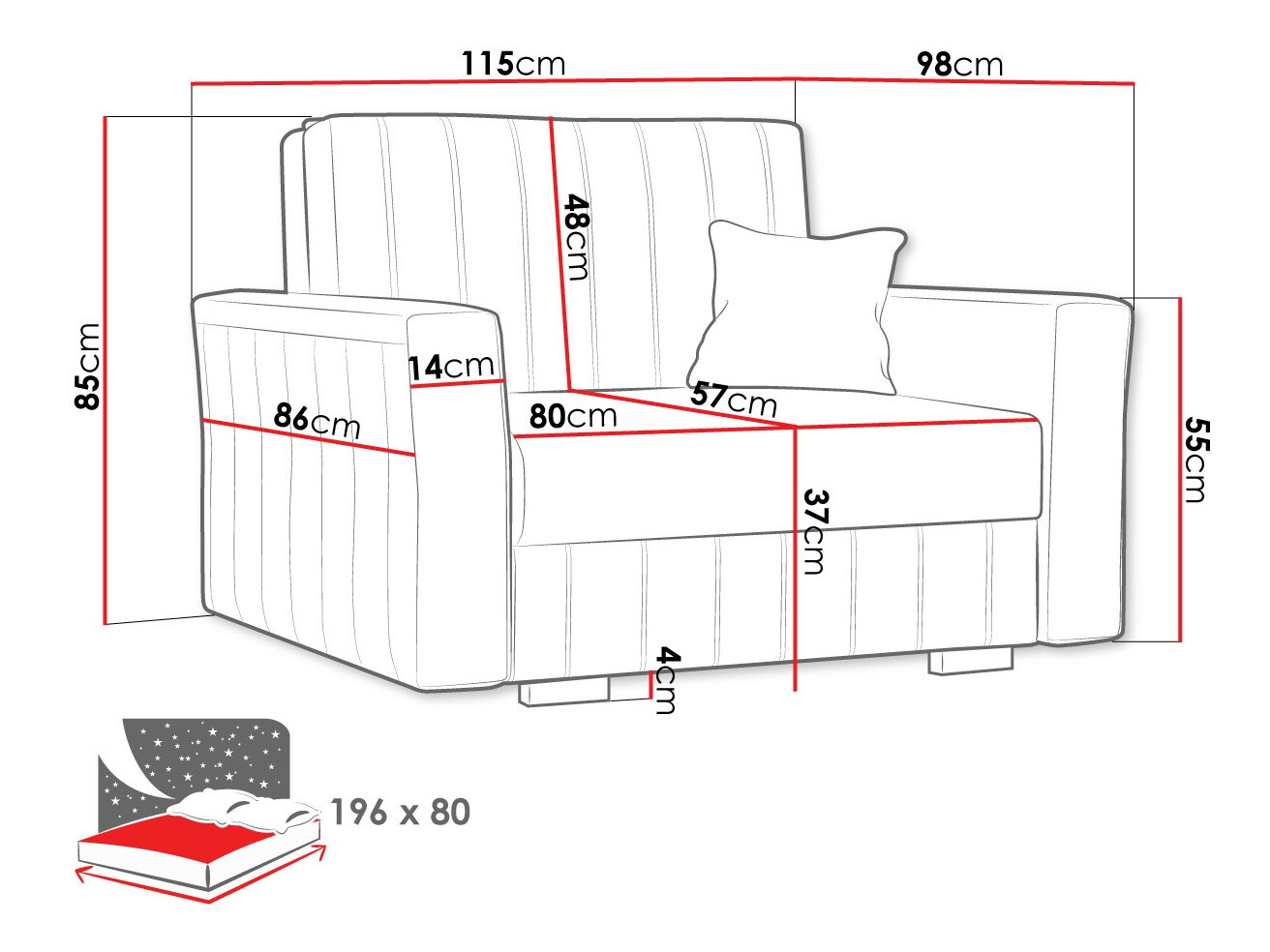 85 cm  115 cm  98 cm