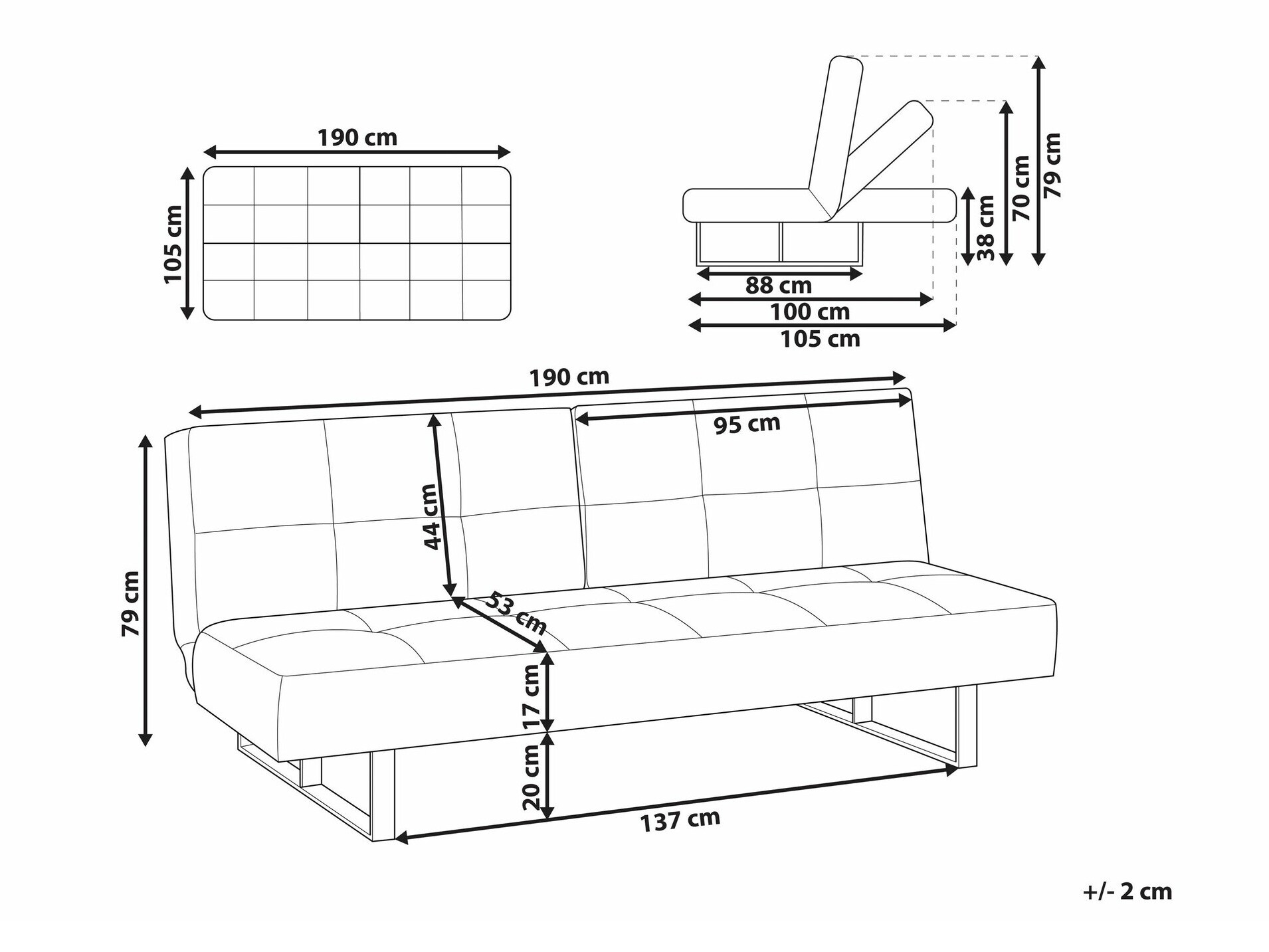 82 cm  190 cm  75 cm
