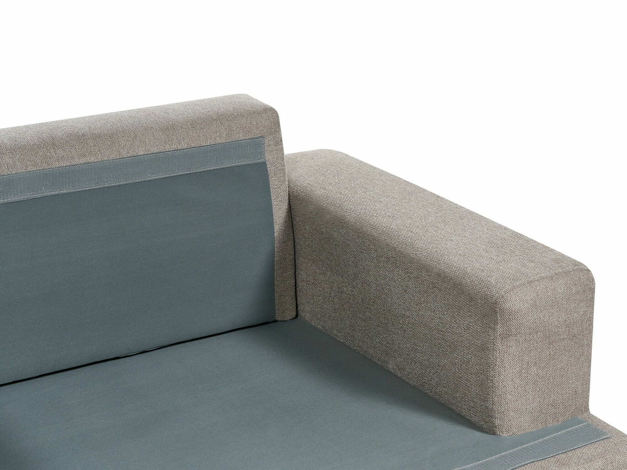 Mēbeļu aizmugures audums neatšķiras no galveno mēbeļu auduma. Jūs varat izvietot mēbeles istabas vidū.