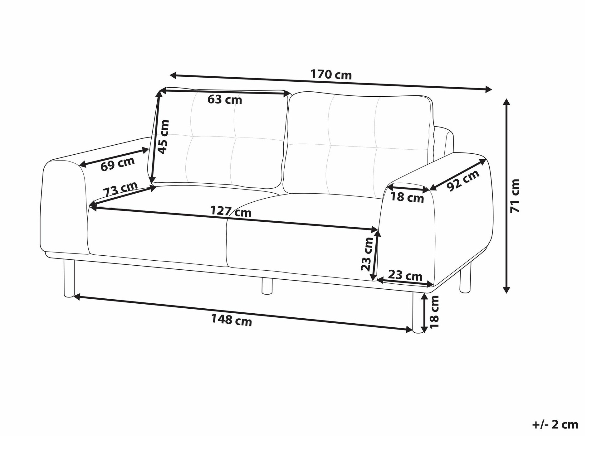 71 cm  170 cm  92 cm