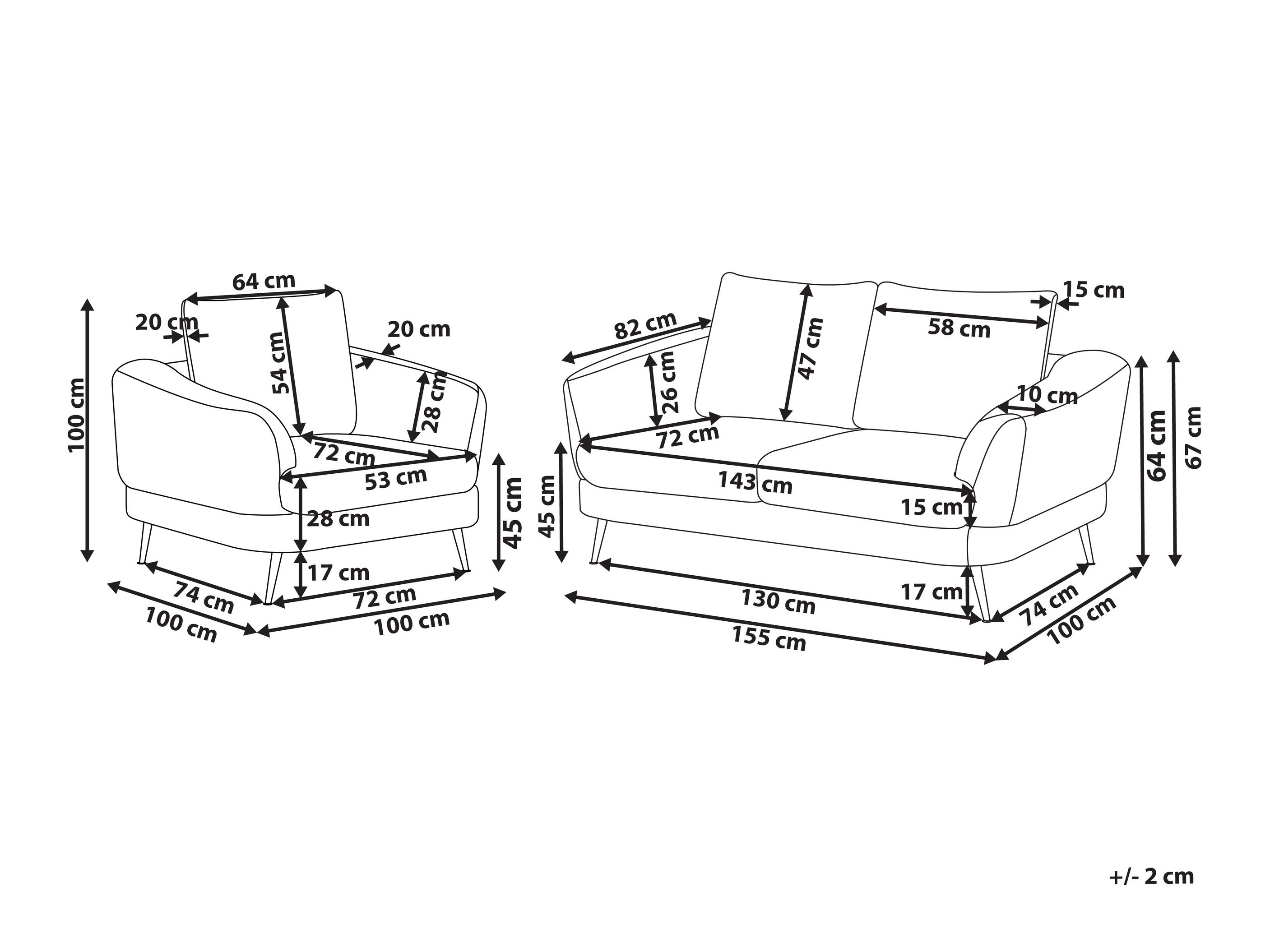 67 x 155 x 100 cm