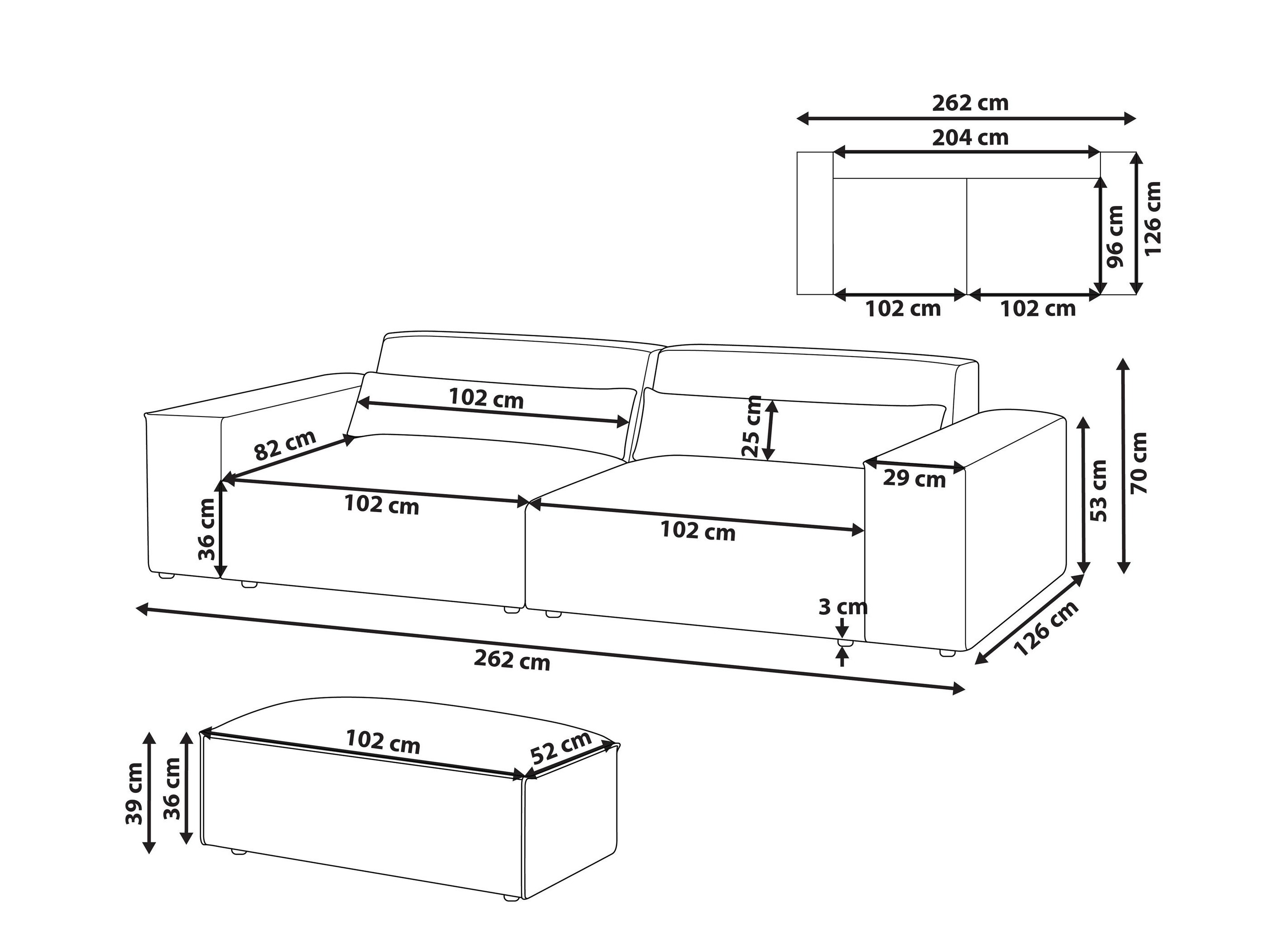 70 x 262 x 126 cm