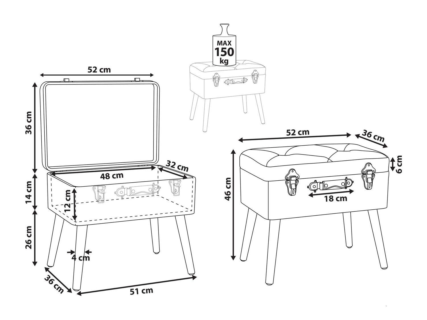 46 cm  36 cm  52 cm
