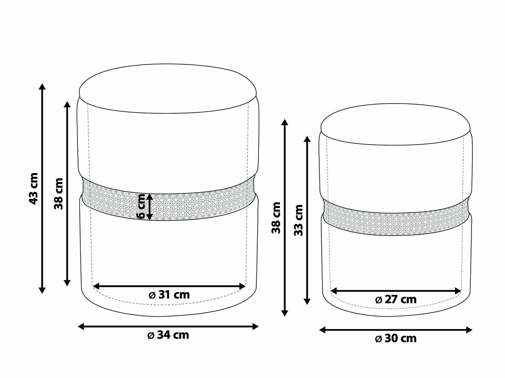 Pufa izmēri: