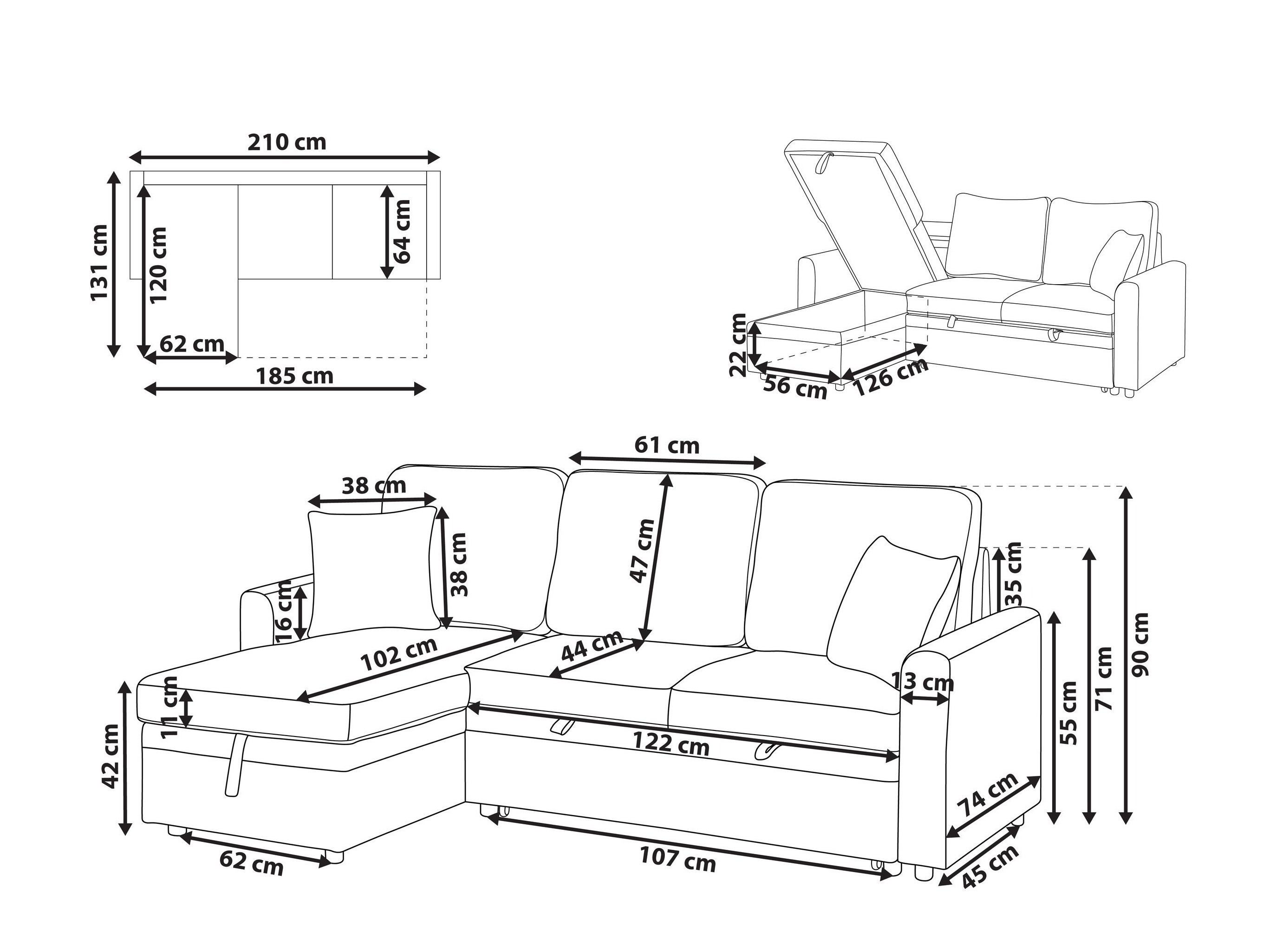 22 x 56 x 126 cm