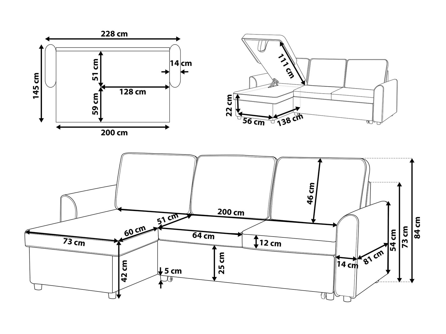 84 cm  228 cm  145 cm