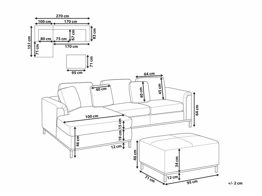 Pufa izmēri: