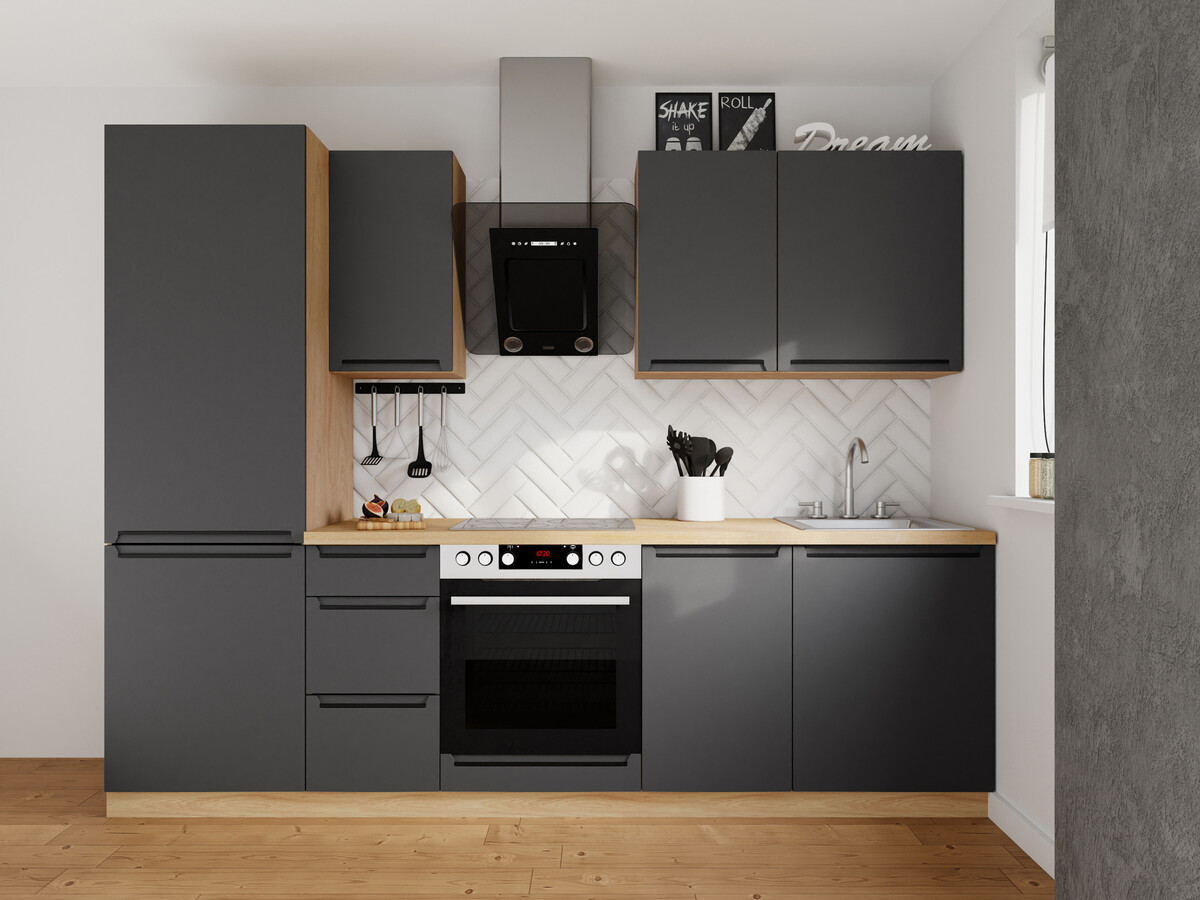 Izveidojiet unikālu virtuves iekārtojumu ar moduļu virtuves mēbeļu kolekciju. Šajā kolekcijā ir dažādi grīdas un piekaramie skapji, kā arī vairāki jau gatavi virtuves komplekti, no kuriem var izvēlēties. Skapju korpusi koka krāsā un matētas fasādes piešķirs virtuvei mūsdienīgu minimālismu, savukārt slēptie rokturi nepārslogo dizainu un nodrošina papildu komfortu. “Flowbox” atvilktnes nodrošina klusu to atvēršanu un aizvēršanu.