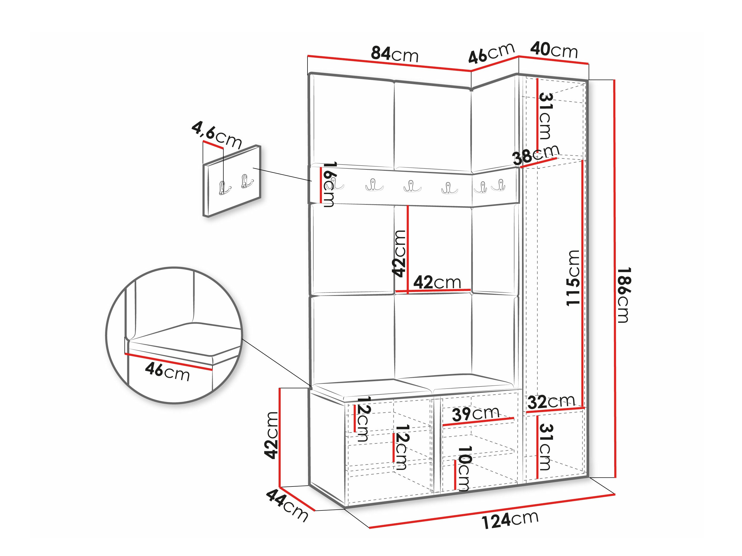 Priekšnama mēbeles izskatās labi un šķiet kvalitatīvas. Veicām nelielas izmaiņas, pakaramo likām paneļu augšpusē, nevis starp tiem, lai paliek vairāk vietas jakām un mēteļiem. Vienīgais mīnuss būtu pārāk augsta cena, ņemot vērā, ka aiz polsterētajiem paneļiem nav saplāksnis, tie tiek līmēti tieši pie sienas un nav nodrošināta līme, jāpērk atsevišķi