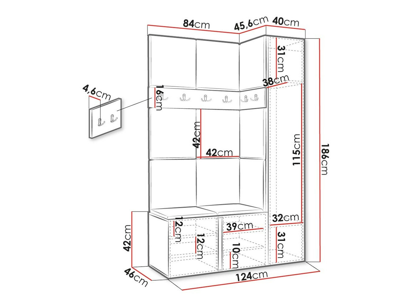 186 x 40 x 46 cm