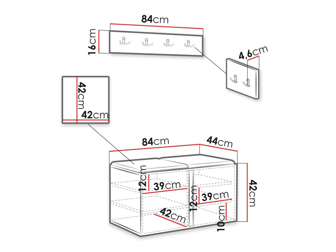 42 x 84 x 44 cm