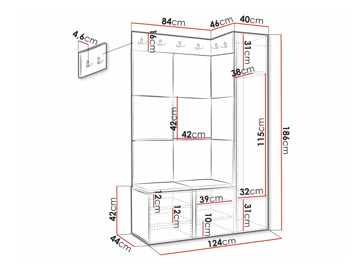 186 x 40 x 46 cm