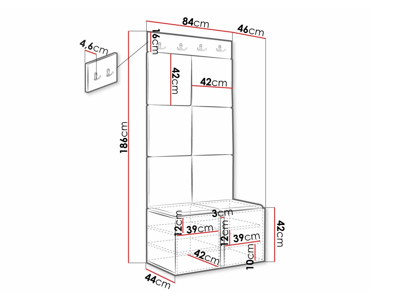 42 x 84 x 44 cm
