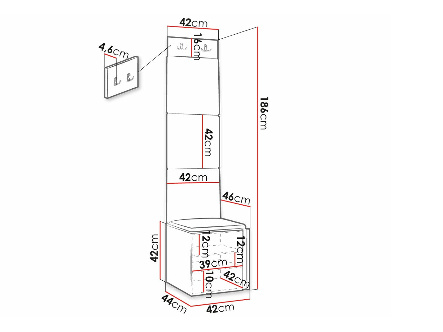 16 x 42 x 4.6 cm