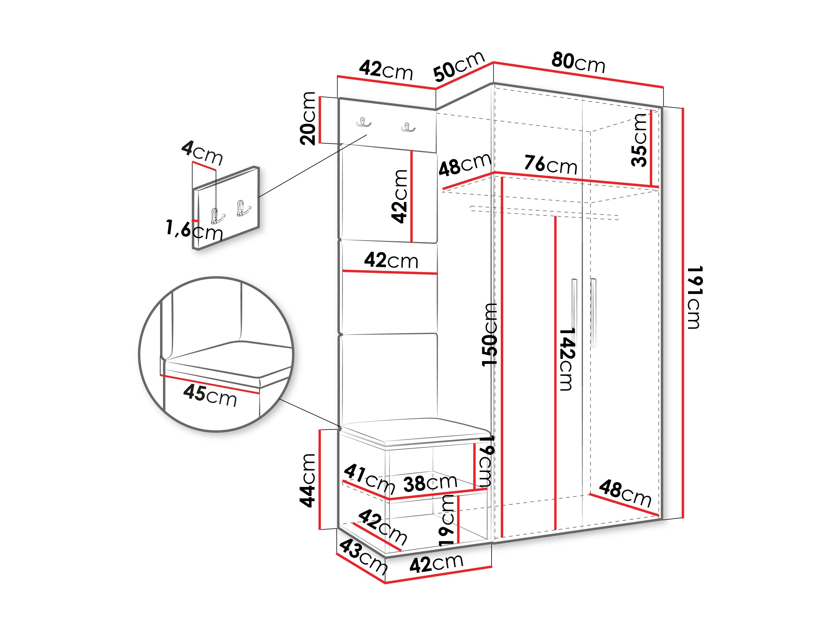 Размеры шкафа: