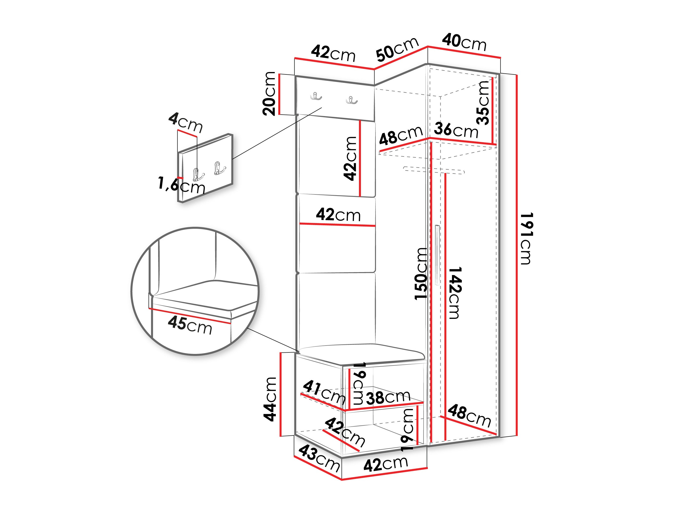 191 x 40 x 50 cm