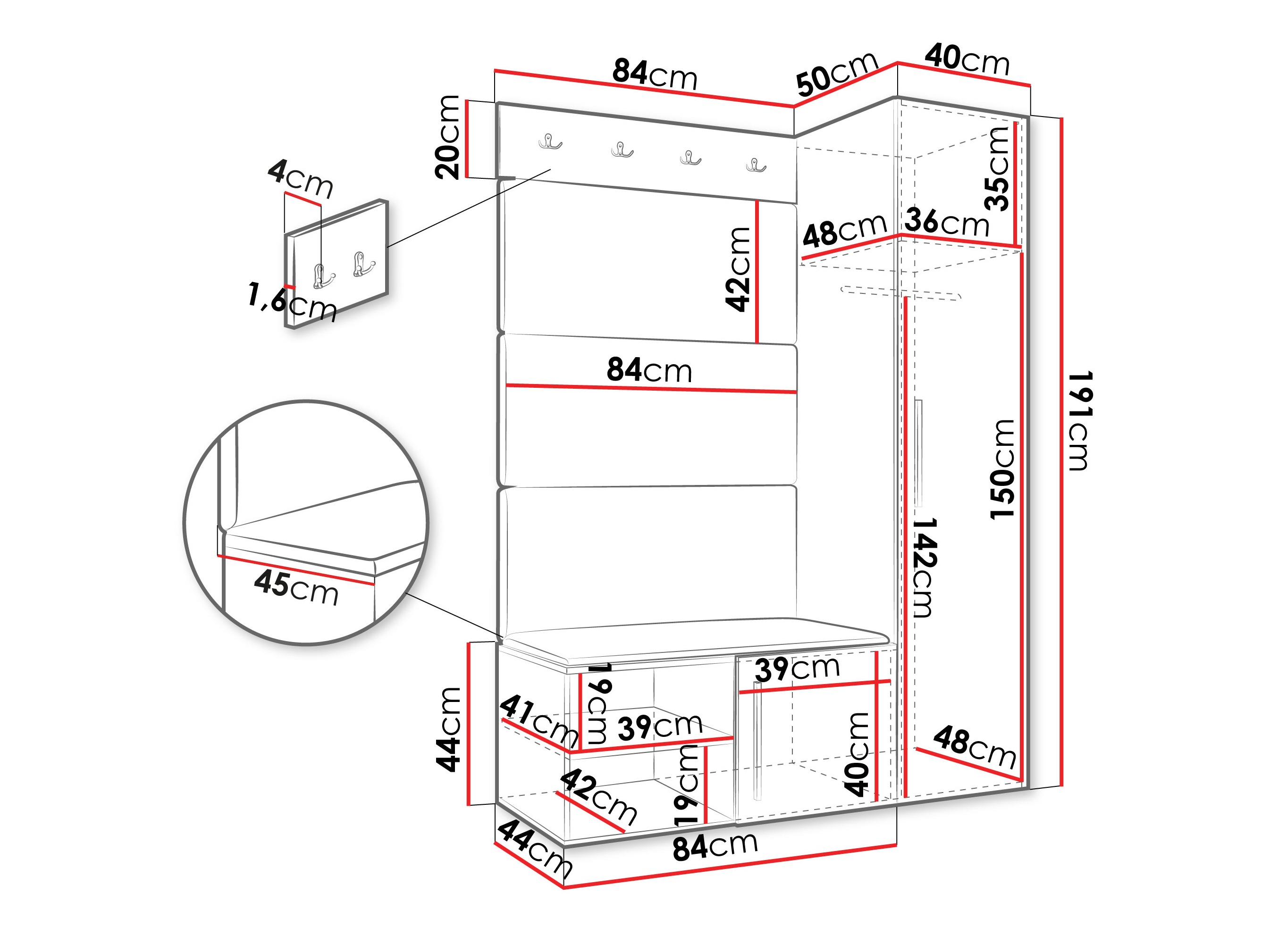 20 x 84 x 4 cm