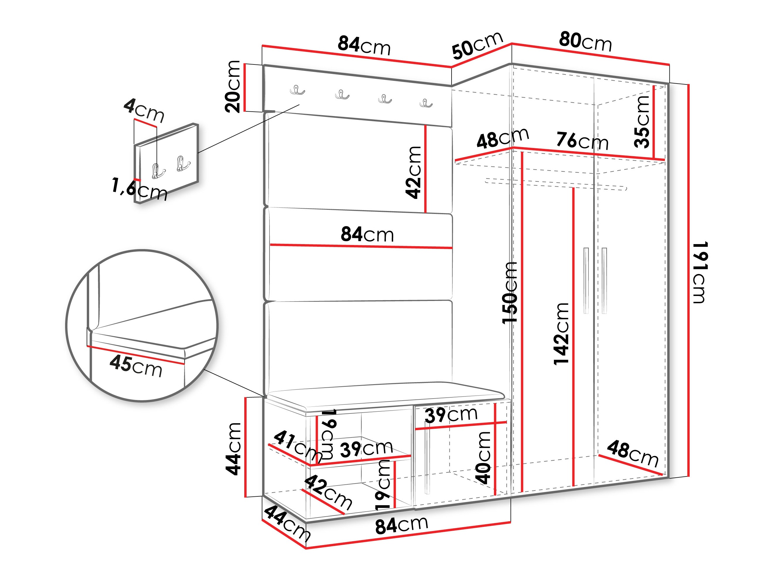 20 x 84 x 4 cm