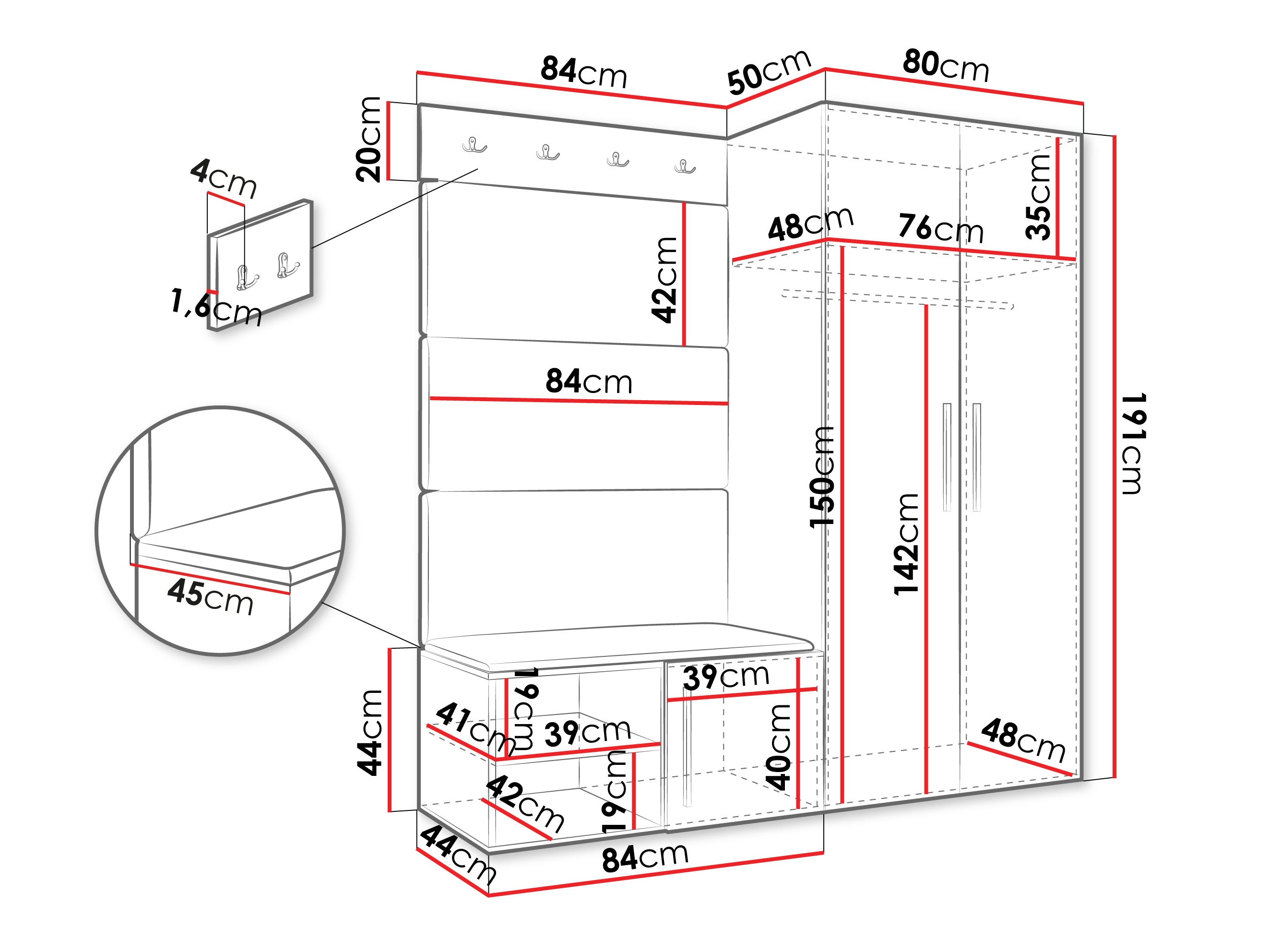 20 x 84 x 4 cm