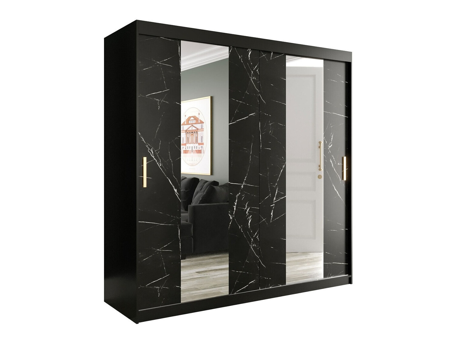 Skapis Hartford 244 (Matēts melns + Melnais marmors)