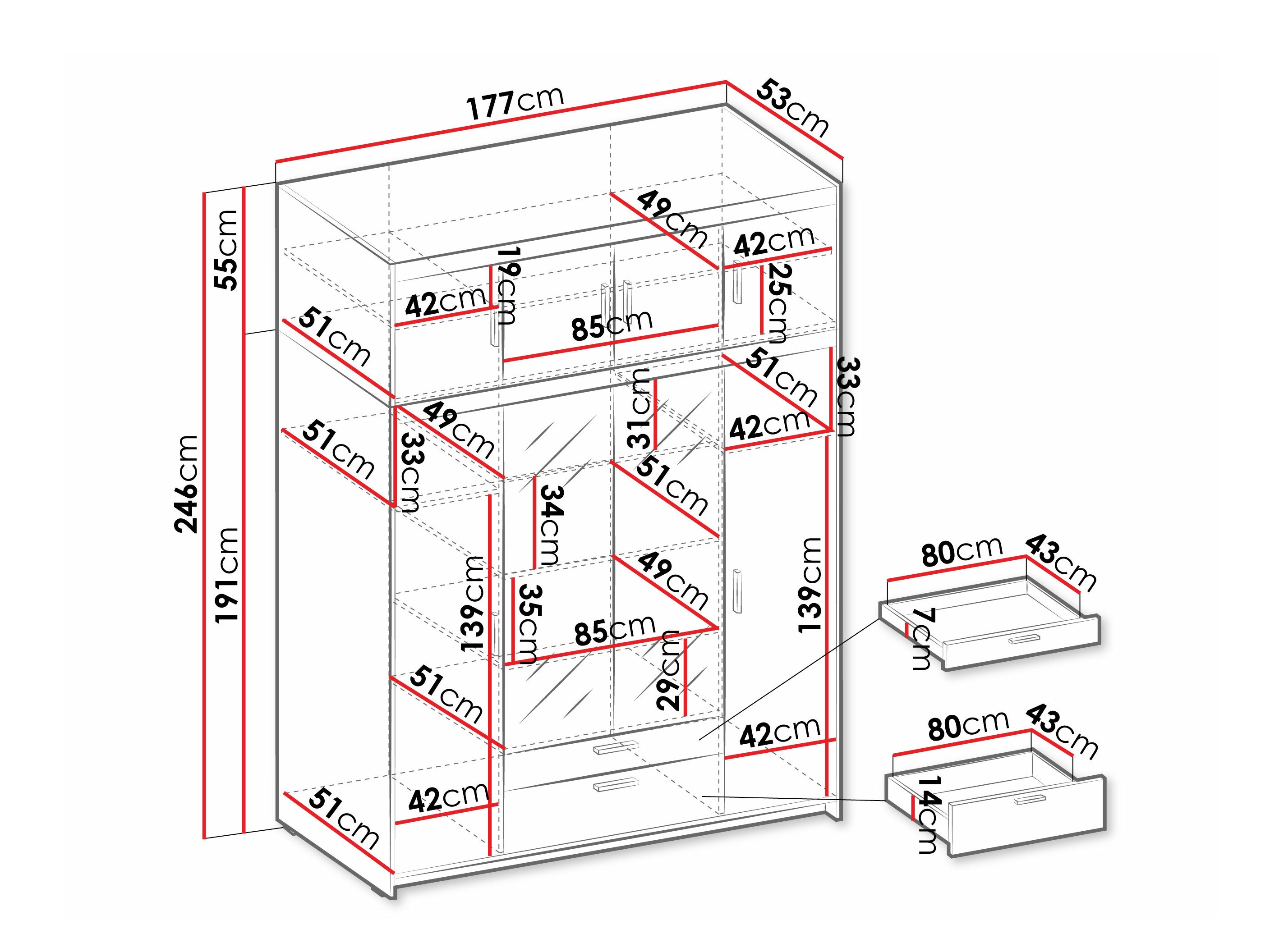 Jauks drēbju skapis ar labu sadalījumu un līdz griestiem. Par 1,76 m. lieliski der. Mehānismi un eņģes darbojas lieliski.