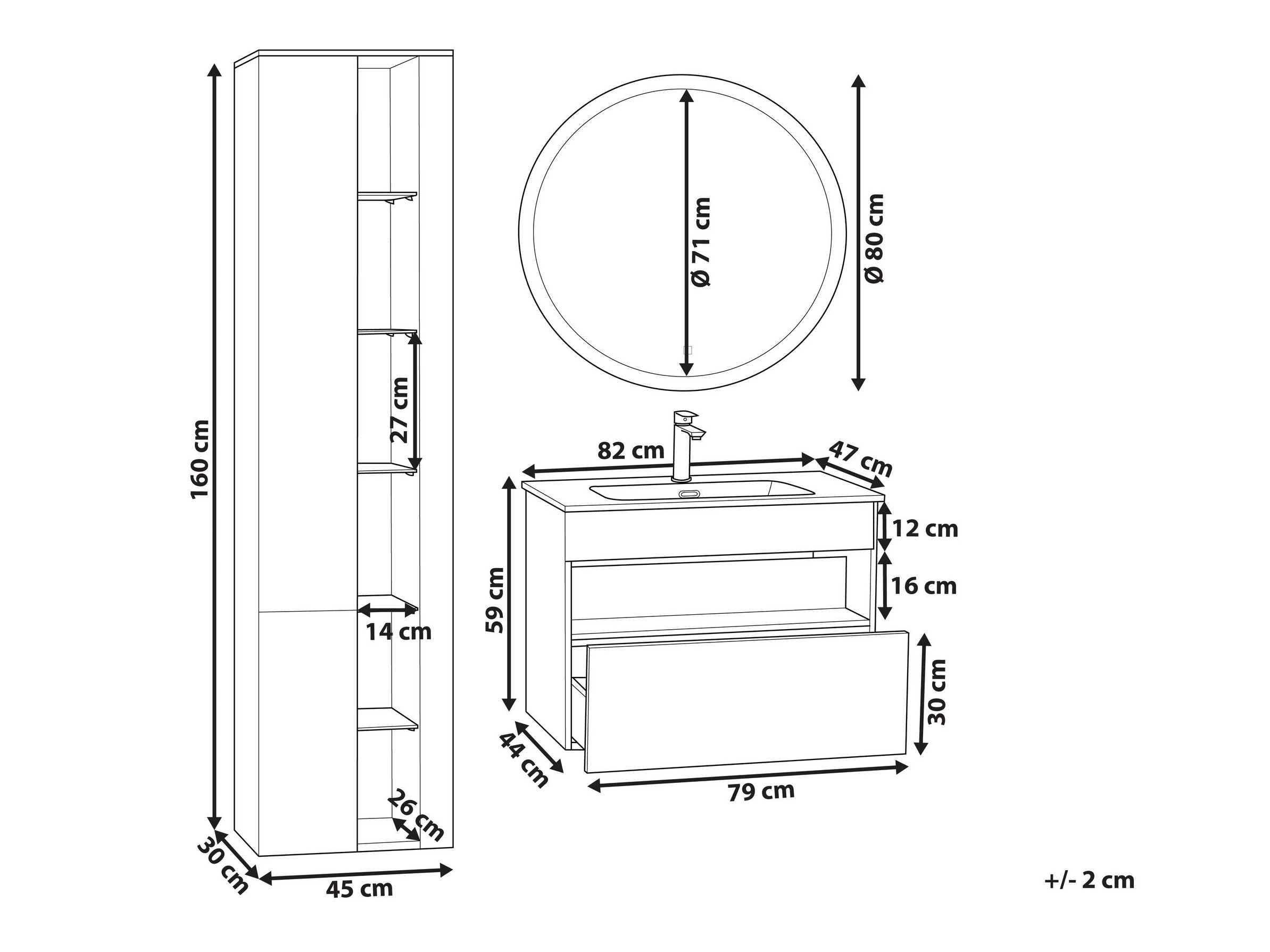 160 x 45 x 30 cm