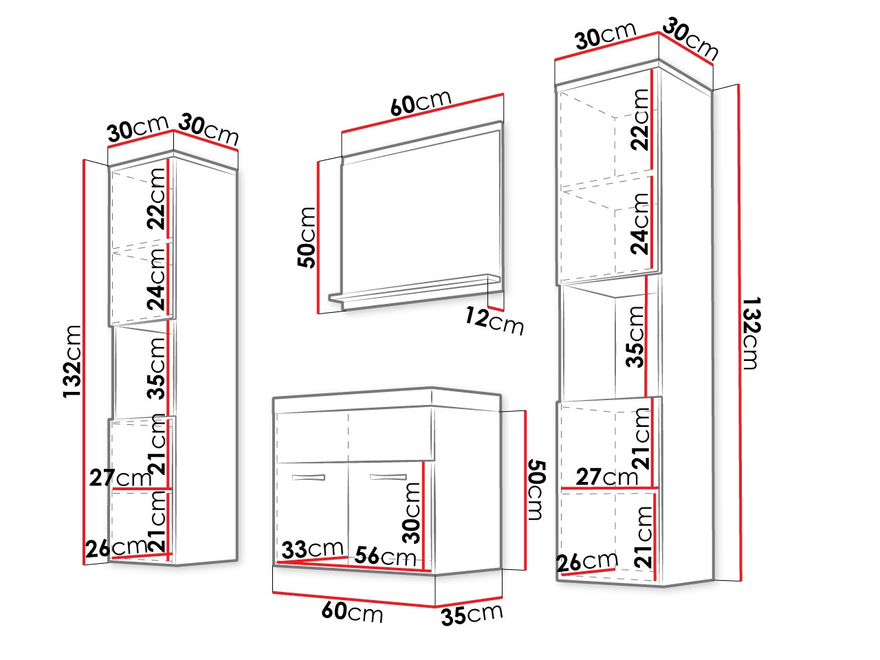132 x 30 x 30 cm