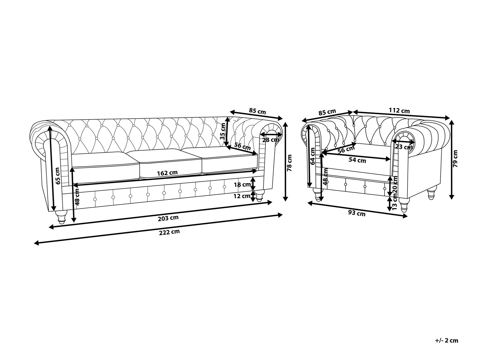 78 x 222 x 85 cm