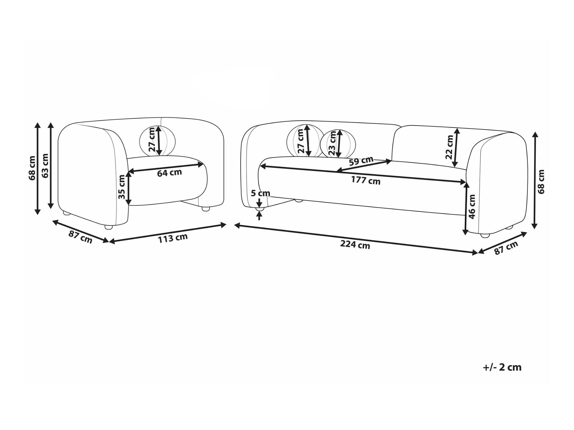 68 x 224 x 87 cm