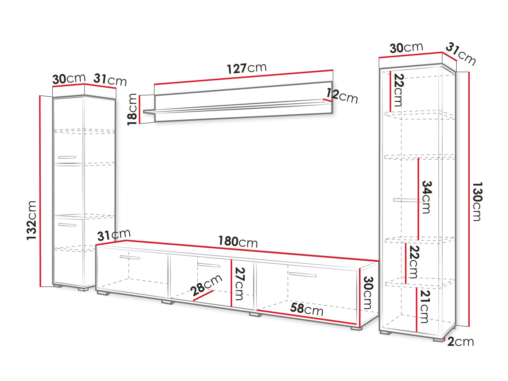 30 x 180 x 31 cm