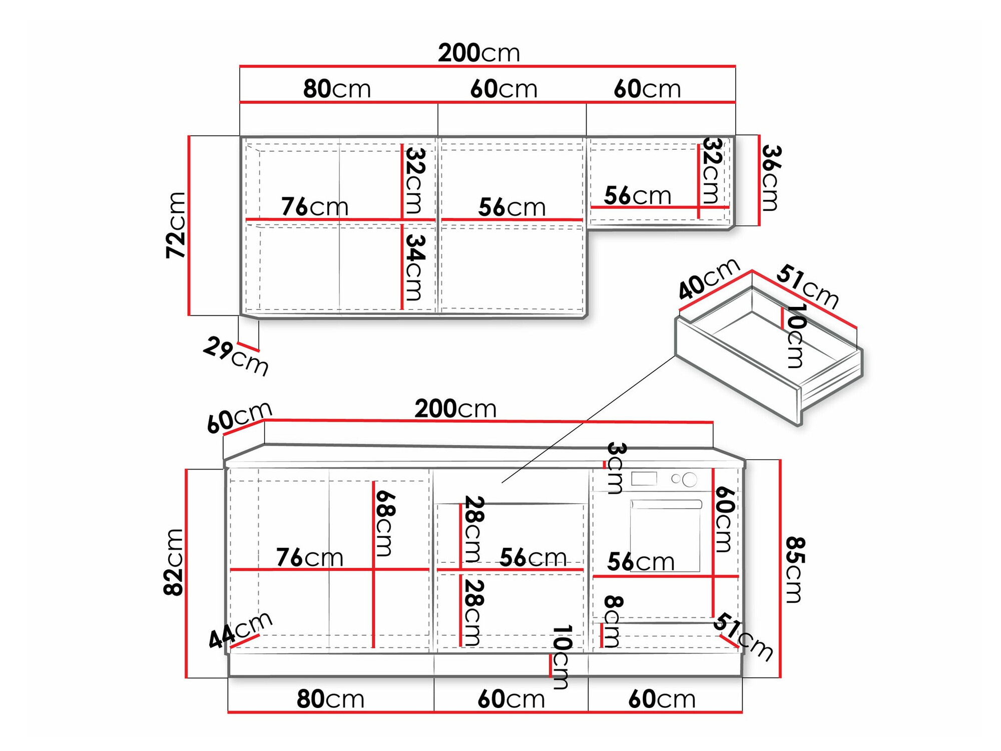 Высота стоячих шкафчиков:
