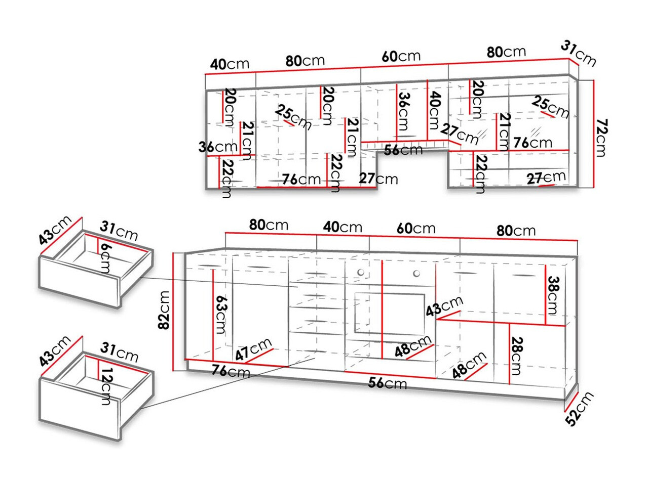 Apakšējo skapīšu augstums: