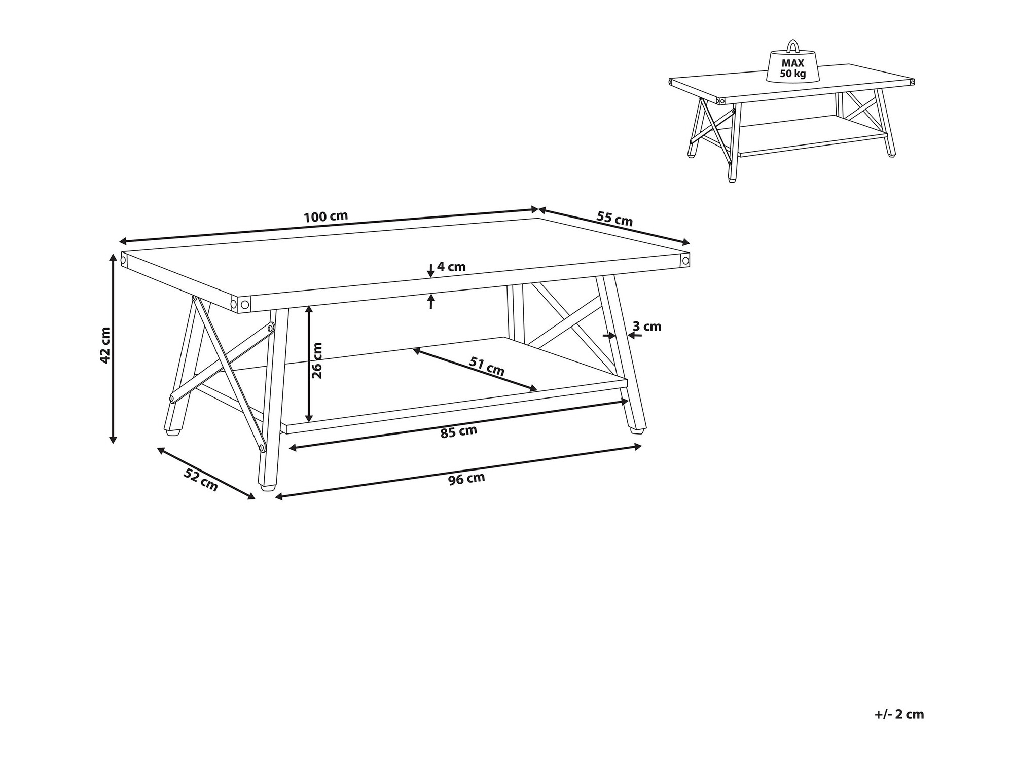 Galda virsmas biezums: