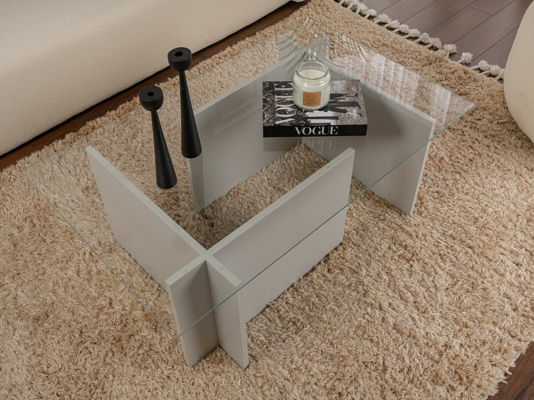 Rūdīta stikla galda virsma